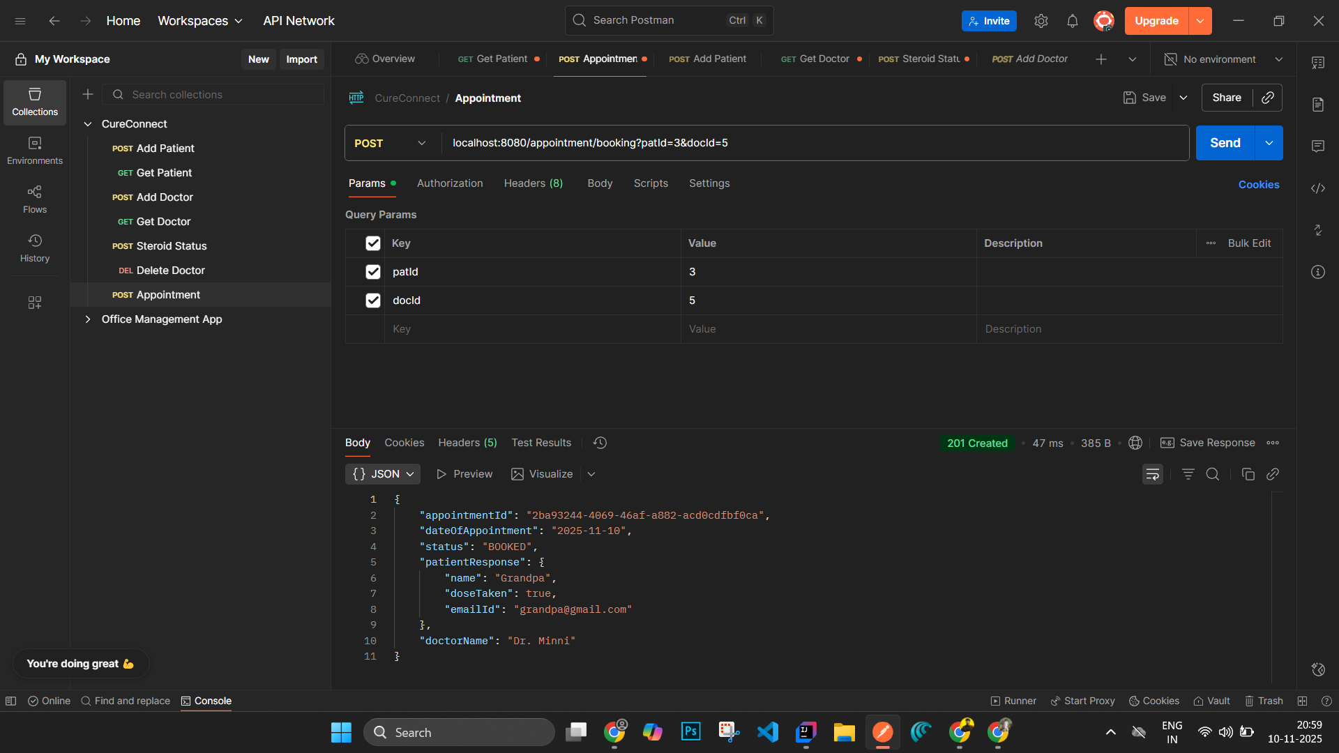 CureConnect is a single-dose steroid vaccination management web app. Implemented RESTful APIs for patient/doctor registration, bookings, and data retrieval. used : Java,Spring Boot